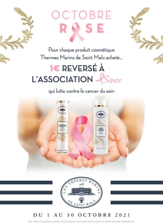 Du 2 au 29 octobre, pour chaque produit cosmétique Thermes Marins de Saint-Malo acheté, 1€ est reversé à l’association SINOO.