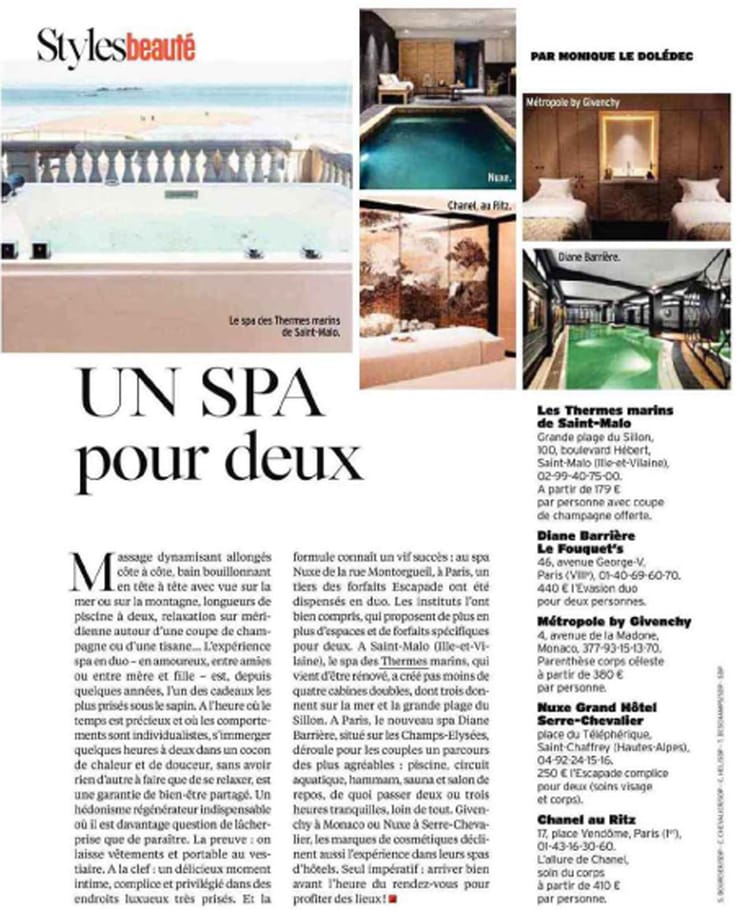 Article Un Spa pour deux paru dans le magazine l'Express de décembre 2017